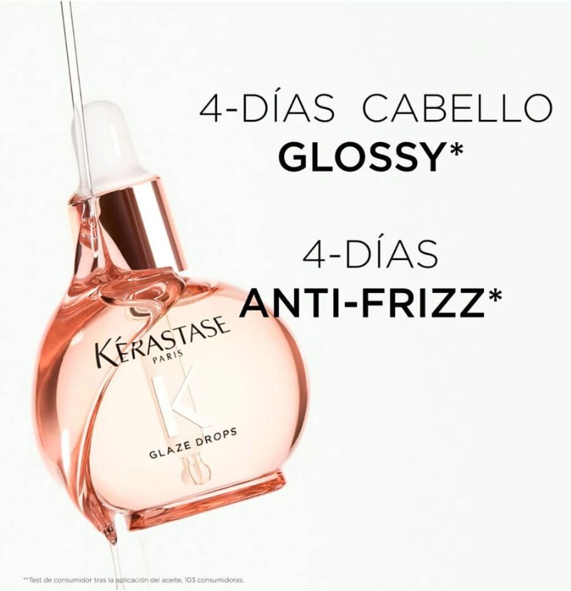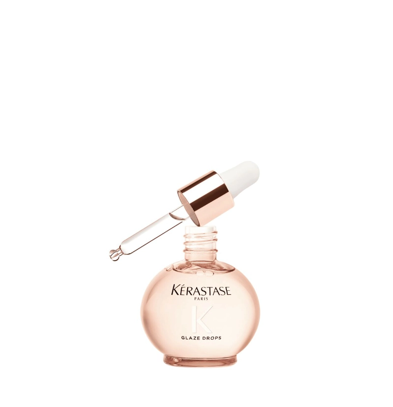Glaze Drops de Kerastase es un aceite capilar ligero para cabello largo con tendencia al encrespamiento, que busca suavidad y brillo intenso. Está especialmente formulado con extracto de rosa silvestre para un cabello glossy: suave, con brillo y ligero.