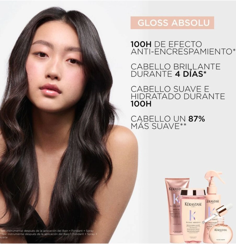 ¿El secreto detrás de la ecuación perfecta de brillo y suavidad? Limpieza + Cuidado + Alineamiento capilar. Para maximizar los resultados, combina con el resto de la gama Gloss Absolu.