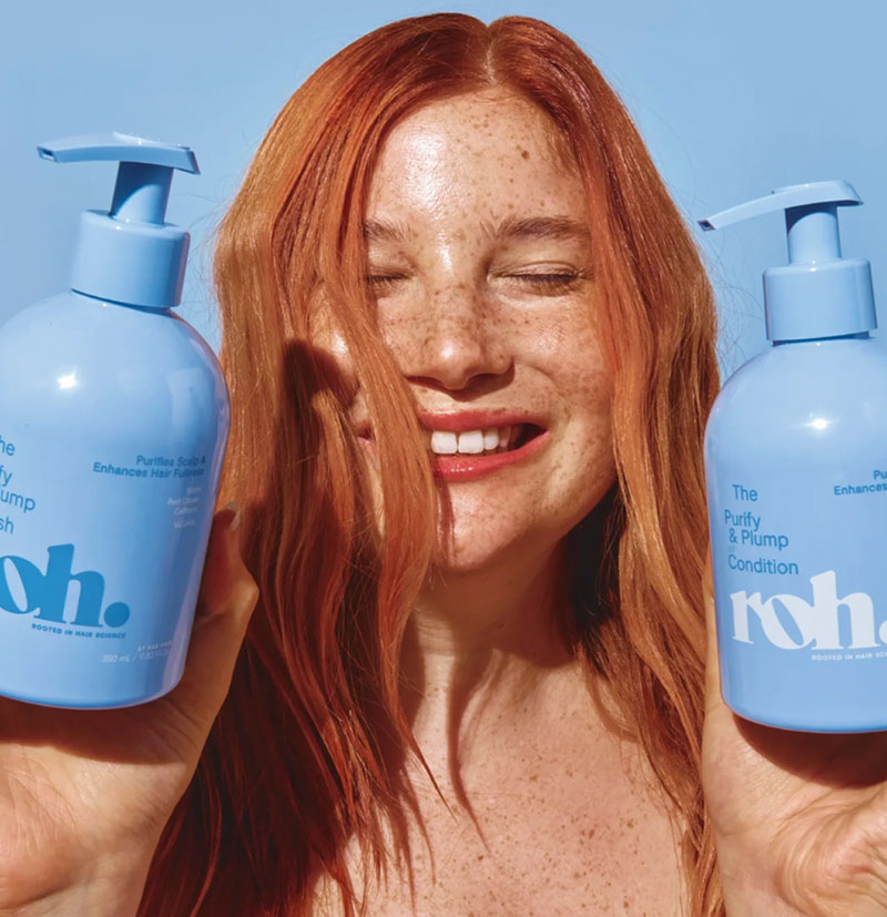 Inspirada en la ciencia capilar, ROH cuida tu microbioma. Purify & Plump Condition es un acondicionador ligero que desenreda y revitaliza el cabello con tecnología fermentada. La biotina, el trébol rojo y la cafeína ayudan a reforzar la resistencia y a aportar volumen natural para un peinado sin grasa, lleno y brillante. Restaura la vitalidad del cuero cabelludo y favorece la salud capilar óptima.