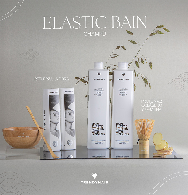 Champú reparador con Queratina y Ginseng BAIN ELASTIC KERATIN & GINSENG de TRENDY HAIR