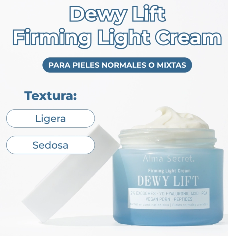 Disponible en dos versiones – Light Cream (pieles normales a mixtas) y Rich Cream (pieles secas) – Dewy Lift ofrece una experiencia sensorial única con resultados visibles desde los primeros usos.