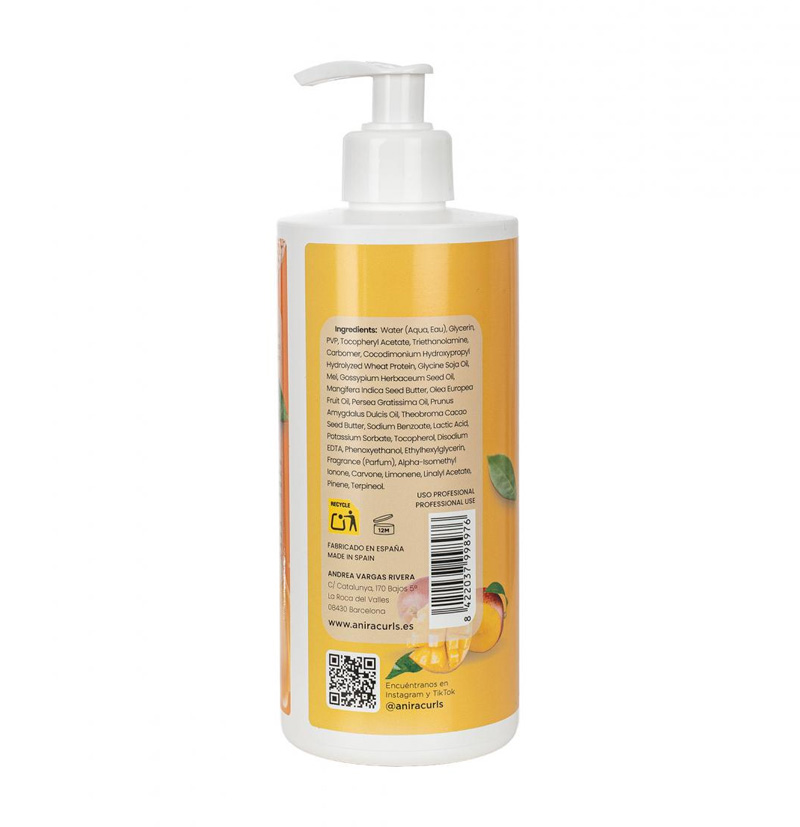 Mango Scrunch es un gel de rizos que nutre, define y aporta cuerpo a todo tipo de rizos gracias a su formulación.