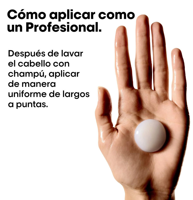 Esta mascarilla profesional tiene una textura rica y sensorial que nutre en profundidad, remodelando y suavizando la queratina del cabello.