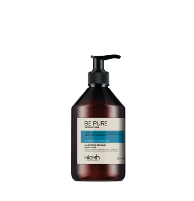 La mascarilla Be Pure Gentle, apta para uso frecuente, es un tratamiento intensivo que penetra profundamente en el cabello, aportando elasticidad, cuerpo y brillo. Gracias a la combinación de extracto de almendra orgánica y aciano, hidrata, acondiciona y nutre. La combinación de ingredientes activos en su fórmula suaviza el cabello, preservando su pH natural. Gracias a sus exclusivas propiedades voluminizadoras, este bálsamo neutro deja el cabello suave y sedoso, sin apelmazarlo.