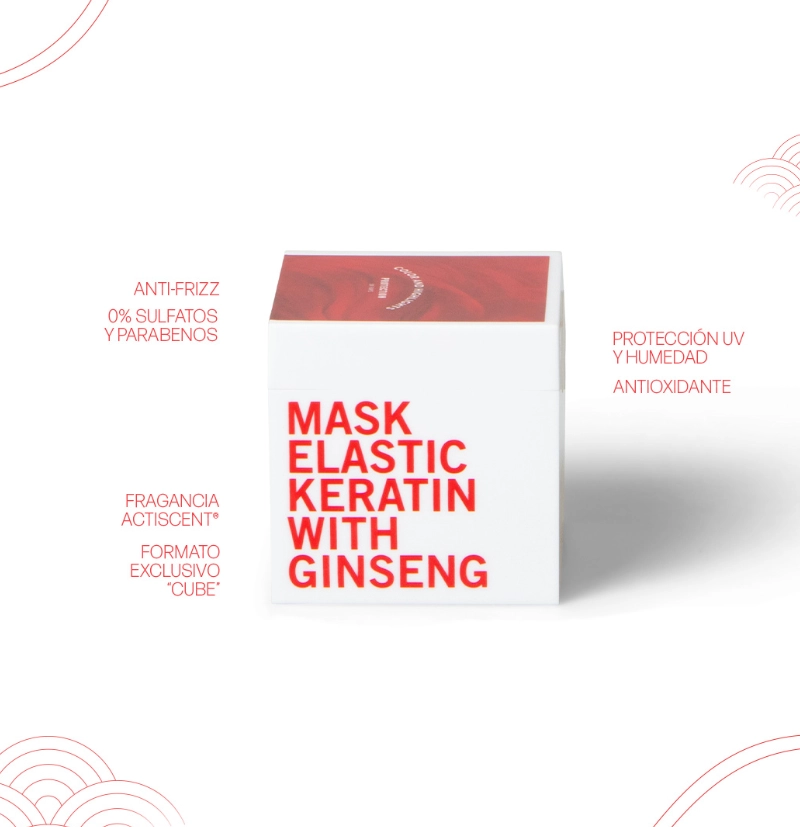 La queratina y el ginseng refuerzan la fibra para reducir la rotura y mejorar la elasticidad; la proteína de arroz y el aceite de argán aportan hidratación intensa, suavidad y brillo sin apelmazar, facilitando el desenredo y el peinado.
