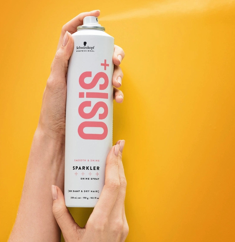 OSiS Sparkler es un spray de brillo que reduce el encrespamiento y mejora el desenredado, a la vez que protege contra la humedad.