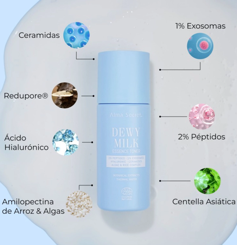 Tónico esencia facial con exosomas DEWY MILK Essence Toner de Alma Secret
